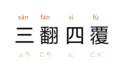 三、四:形容次数之多。翻、覆:反复。形容变化很多;反复无常。。