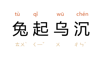 出处《参同契》上卷:“昏明顺寒暑。”后蜀·彭晓注:“兔起乌沉,升降于三百八十四日。”