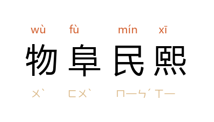 阜:丰富;熙:吉祥。物产丰富,人民幸福。