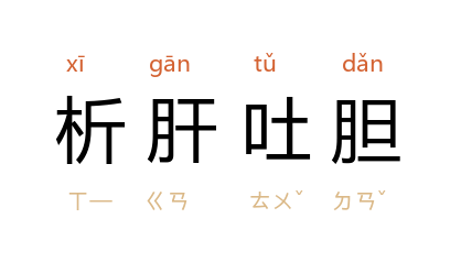 出处明·高以俭《〈太师张文公集〉跋》:“受顾命,辅冲圣,秉国十年,乃举其生平,析肝吐胆献之天子。”