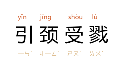引:伸长;拉长;戮:杀。伸长脖子;等待被杀。指不作任何抵抗;甘愿等死。