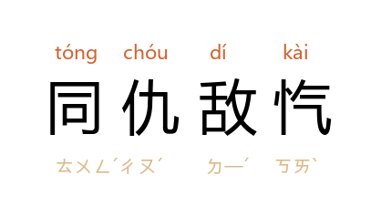 同仇:共同对敌;敌:对抗,抵拒;忾:愤怒。指全体一致痛恨敌人。