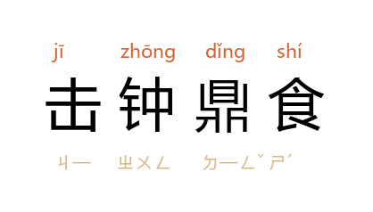 打钟列鼎而食。形容贵族或富人生活奢华。