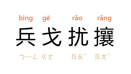 兵戈:武器,指战争;扰攘:纷乱。形容战争时期社会动荡混乱。