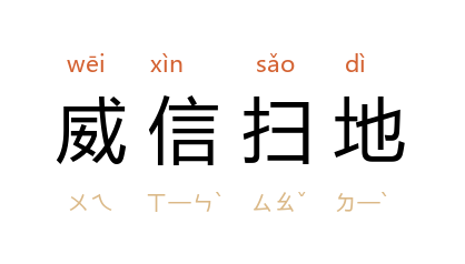 威信:威望和信誉。威望、信誉全部丧失。比喻威望和信誉完全丧失。
