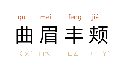 曲:弯曲。丰:丰满。弯弯的眉毛,丰润的脸颊。形容相貌美丽富态。