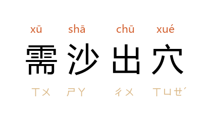 语本《易·需》:“需于沙,小有言,终吉。”和“需于血,出自穴”。后因用“需沙出穴”谓遇险凶而能幸免。
