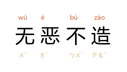 出处《百喻经·诈言马死喻》:“然杀众生,加诸楚毒,妄自称善,无恶不造,如彼愚人。”