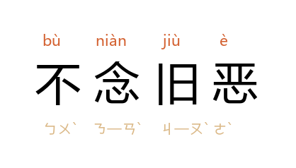 念:记住;旧:过去的;恶:恶劣的行为;指怨恨;仇怨。不记住或不计较过去和别人的仇恨。