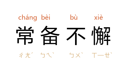 常:时常;备:防备;准备;懈:懈怠;放松。时常准备着;从不松懈。形容警惕性高。