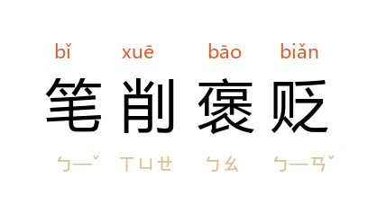 笔:记载。削:删改。古时在竹简或木简上写字,写错要修改时就用刀削。原指孔子作《春秋》,用文字来评文论物的好坏。也指用文字褒扬、贬斥人或事。