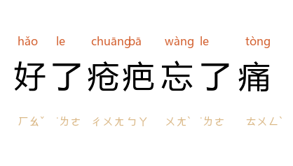 拼音hǎo le chuāng bā wàng le tòng