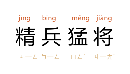 精:精锐;猛:勇猛。精良的士兵,勇猛的将领。形容战斗力很强的将士。