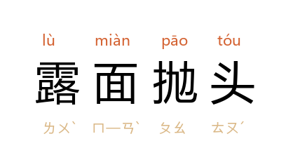 抛:暴露。露出头和面孔。原指妇女出现在大庭广众之中。现指公开露面。