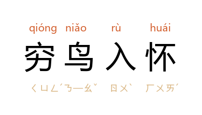 穷鸟:困窘的鸟;怀:投入怀抱。比喻处境困难而投靠别人。