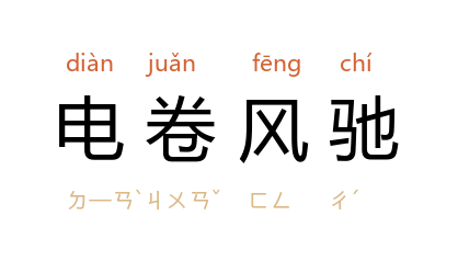 卷:收起;驰:急行。形容像刮风和闪电那样迅速