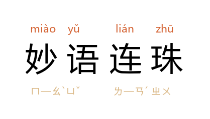 连珠:串珠;像珠子一样一个接一个串接着。巧妙风趣的话一个接一个。