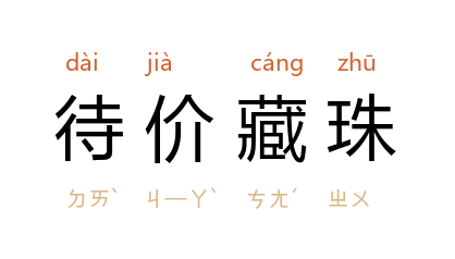待:等待;待价:等待高价出售。珍藏明珠,等待高价出售。比喻有才学者等待被人赏识。