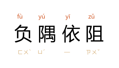 负:依仗;隅:同“嵎”,角落或山势弯曲险要之处。凭恃地势的险阻,进行抵抗或固守。