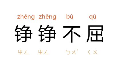 铮铮:响当当。响当当宁折不弯。形容人坚强不屈,有骨气。