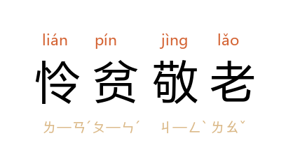 老:年老的人;怜:怜恤。尊敬老人,怜恤家境困苦的人。形容人有恭谨慈爱的美好品德。
