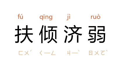 例子孙中山《民族主义》第六讲:“我们今天在没有发达之先,立定扶倾济弱的志愿。”