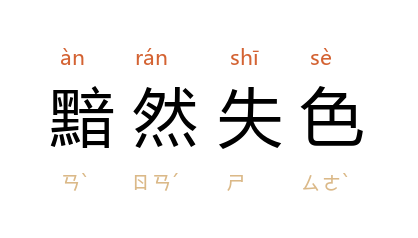 黯然:昏暗的样子;失色:失去光泽。原指心情沮丧;脸色难看。形容相比之下显得暗淡无光。有时也形容心情不好。
