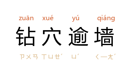 穴:洞。逾:越过。钻洞爬墙。旧时常比喻违背父母之命、媒妁之言的青年男女自由相恋的行为。后也指男女偷情或小偷行窃。