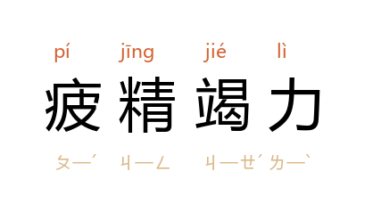 疲:疲倦;竭:尽。精神、力气消耗已尽。形容非常疲劳。