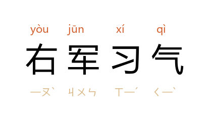右军:晋著名书法家王羲之,曾任右军将军,世称王右军。比喻一味摹拟古人,不能自创一格。