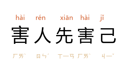 出处清·郭小亭《济公全传》第137回:“常言道,害人先害己,这话诚然不错,小子也是该死的。”