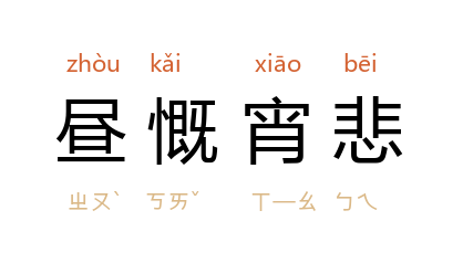 昼:白天;宵:夜晚。白天慨叹,夜晚伤悲。形容非常悲痛。