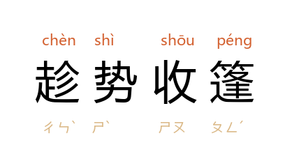 出处清·李宝嘉《官场现形记》第40回:“马老爷见瞿太太一面已经软了下来,不至生变,便也趁势收篷。”