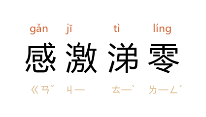 感激得掉下眼泪。来形容极为感动的样子。有时带有讽刺之意。涕:眼泪。零:落。