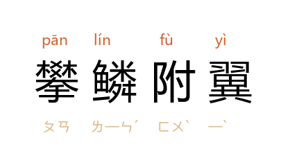出处汉·扬雄《法言·渊骞》:“攀龙鳞附凤翼,馔以扬之,勃勃乎其不可及也。”