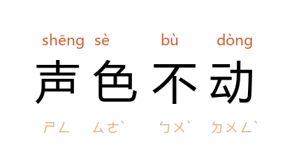 声:说话的声音;色:脸色;动:变动。不说话,不流露感情。形容神态非常镇静。