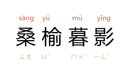 出处《书言故事·耆老类》:“年老云桑榆暮影。”
