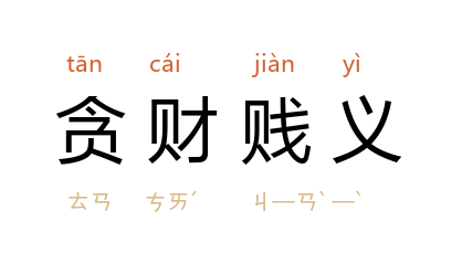 贱:轻视;义:道义。贪图钱财,轻视道义。