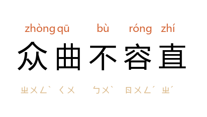 曲:弯曲,比喻邪恶;直:笔直,比喻正直。比喻在众多的坏人里不能容纳正直的人。