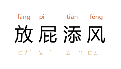 出处明·吴承恩《西游记》第七十五回:“兄弟,你虽无甚本事,好道也是个人。俗云:‘放屁添风。’你也可壮我些胆气。”
