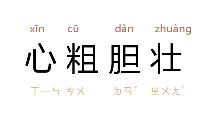 粗:粗疏,粗略。心思粗疏,胆量很大。形容野心勃勃,肆无忌惮。