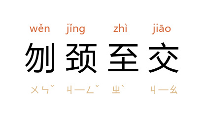 刎颈:割脖子;交:交情。比喻情谊深厚,可以同生死、共患难的朋友。