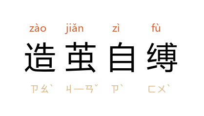 作茧自缚。喻做了某事,结果反而使自己受困。