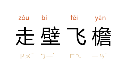 在墙壁上走,在屋雄上飞。形容武艺高强。