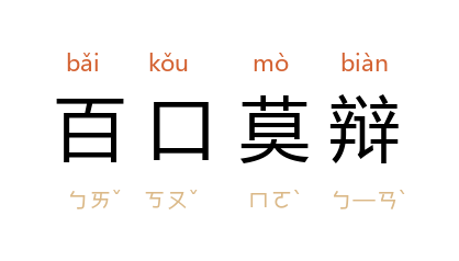 莫:不能;辩:辩白。即使有一百张嘴也辩白不清。形容不管怎样辩白也说不清楚。