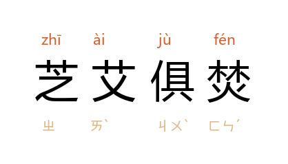 芝艾:比喻美和恶。芝艾同被烧毁。比喻好的坏的同归于尽。