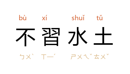 出处《通俗编 地理引南史 王融传》:“上以魏所送马不称,使融问之,宋弁答曰:当是不習水土。”