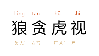 象狼一样贪婪,象老虎一样睁大眼睛盯着。比喻野心很大。