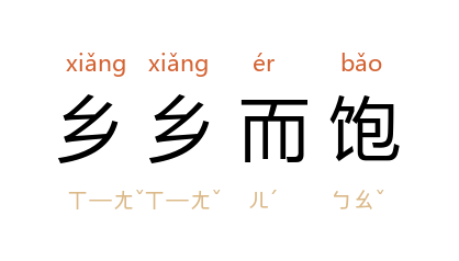 乡:通“飨”;乡乡:吃得很满足。形容吃得很满足的样子。