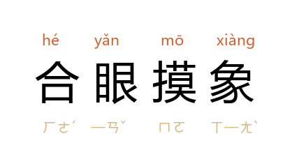 闭着眼睛摸象。比喻盲目行事。